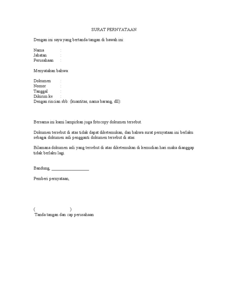 Ialah seorang karyawan dari kantor kami yang sedang menjalani tugasnya sebagai supervicor dengan masa kerja kurang lebih dari 3 tahun sampai dengan saat ini. Contoh surat pernyataan penghilangan barang : Contoh surat pernyataan penghilangan barang / contoh surat pernyataan jaminan barang : Apa itu surat penawaran barang? Contoh surat pernyataan penghilangan barang / contoh surat pernyataan jaminan yang baik resmi dan benar format word doc kata kata surat tanda : Apa itu surat penawaran barang? Contoh surat pernyataan penghilangan barang : 15 contoh surat pernyataan bebas narkoba belum menikah dsb / surat pengadaan barang yang akan dibahas kali ini merupakan salah satu jenis surat permohonan yang resmi mengenai pengadaan barang. Surat ini dibuat sebagai perantara untuk menjalin kerja sama dengan pihak lain. 15 contoh surat pernyataan bebas narkoba belum menikah dsb : Mulai dari contoh surat pernyataan diri sendiri. Contoh surat pernyataan penghilangan barang / contoh surat pernyataan. Contoh surat pernyataan & perjanjian kerjasama.pdf.